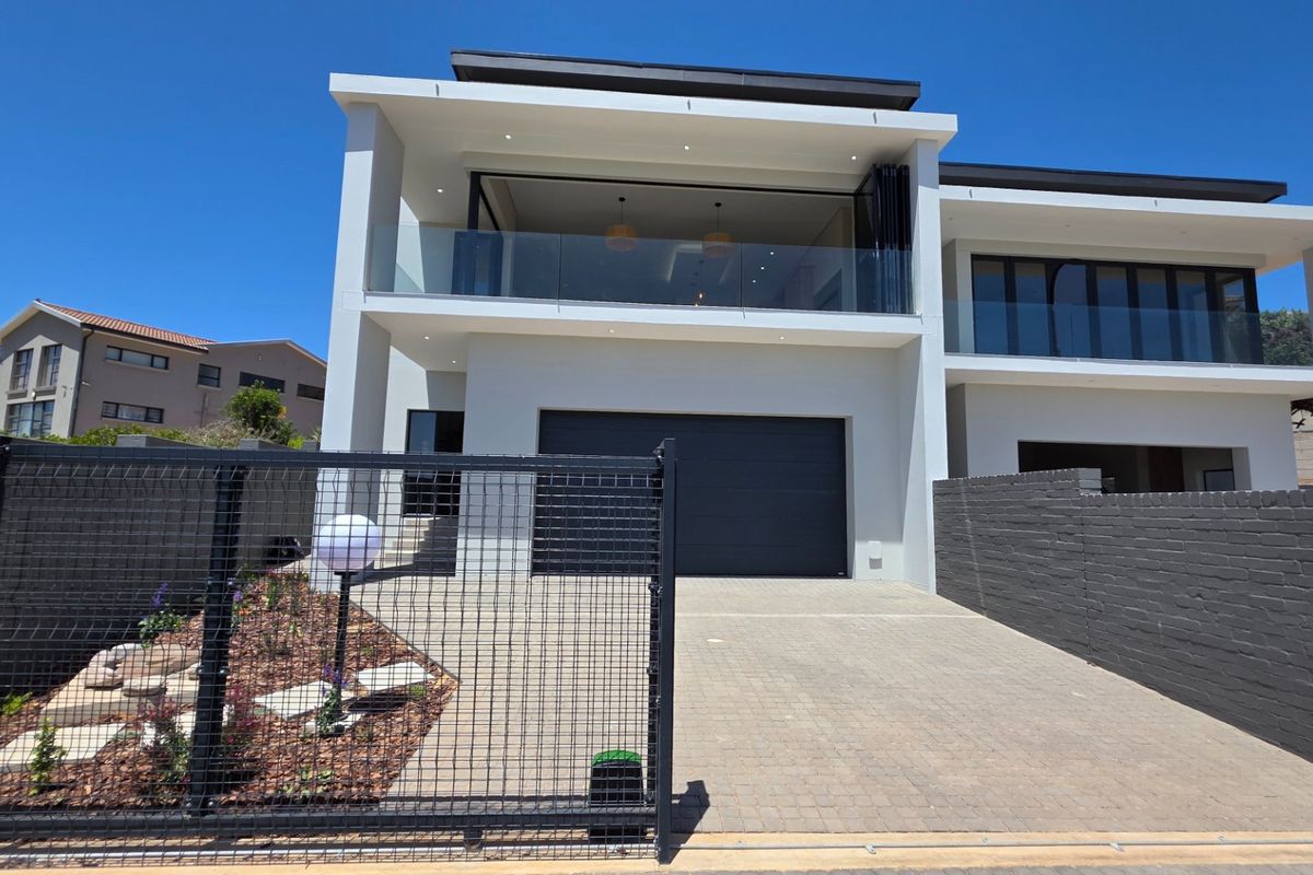 Embrace relaxed coastal living just outside Hartenbos with panoramic river, mountain and ocean views, modern island kitchen and built-in braai — three bedrooms, 2.5 baths, double garage.