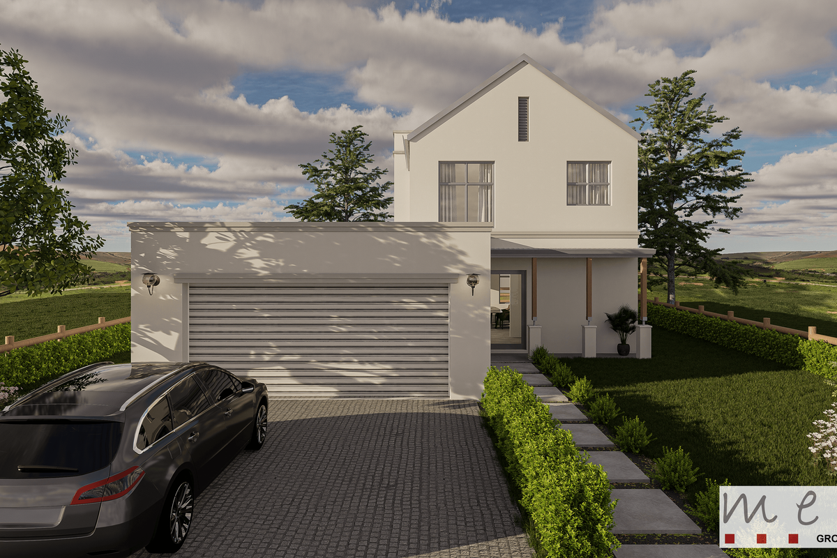Family-focused living in Hartland Lifestyle Estate's Klein Karoo — contemporary double-story home with open-plan ground floor, first-floor en-suite main, and patio with built-in braai for summer gatherings.