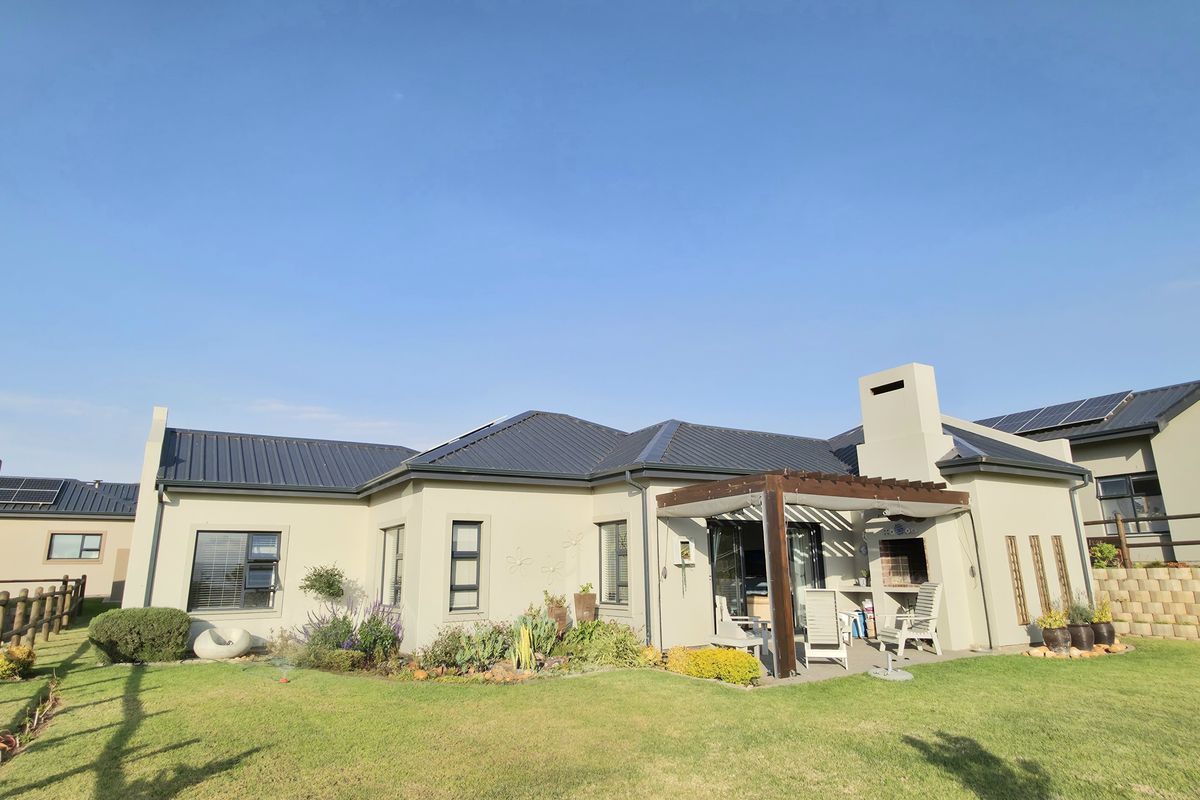Relaxed Garden Route living between Hartenbos and Little Brak River in secure Hartland Lifestyle Estate, with sunny open-plan interiors, inviting patio for braais, and three bedrooms, two bathrooms.