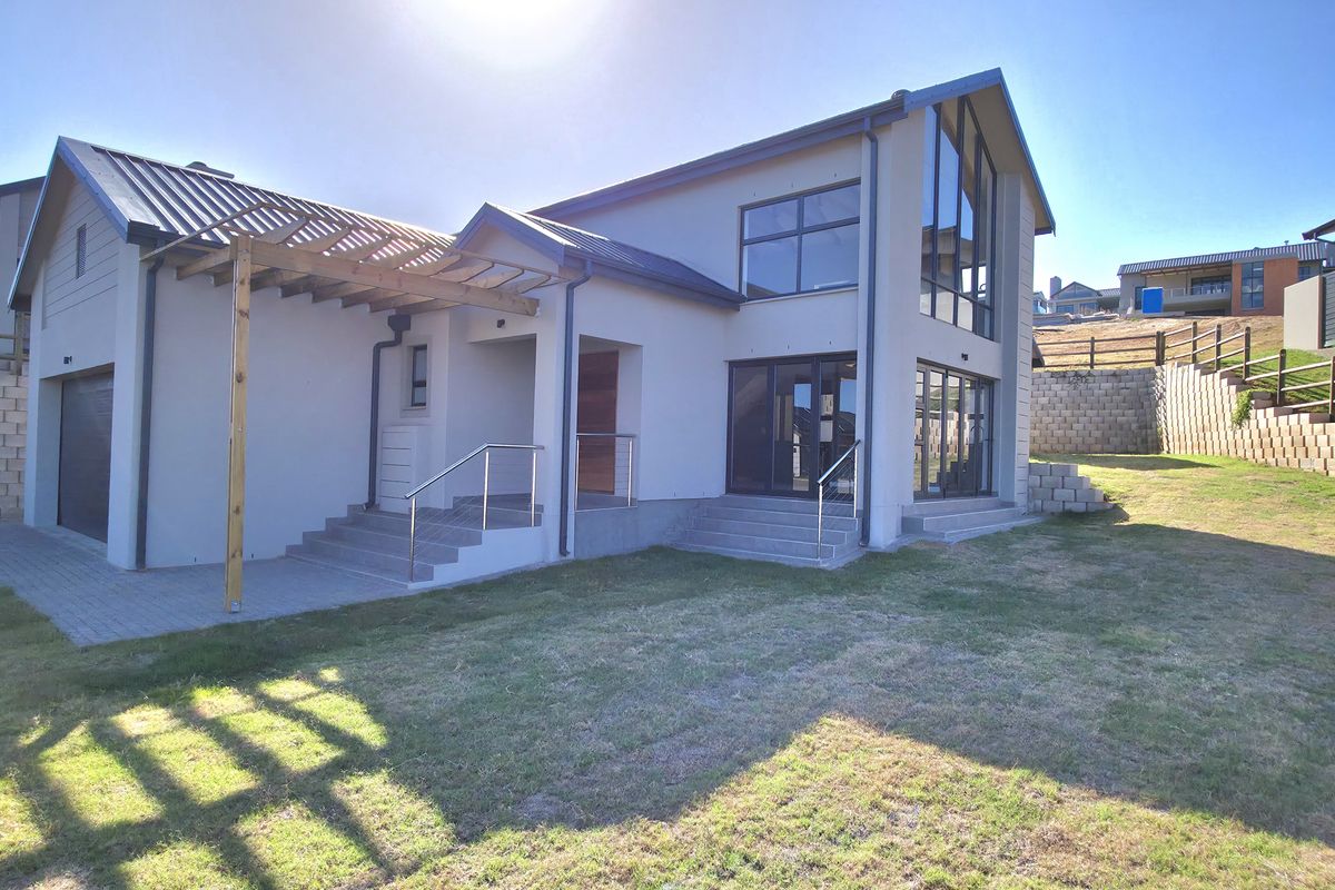Coastal living with sea views from every bedroom in Hartland Lifestyle Estate — open-plan kitchen flows to courtyard with built-in braai and outdoor shower. Three bedrooms, 2.5 baths, double garage.