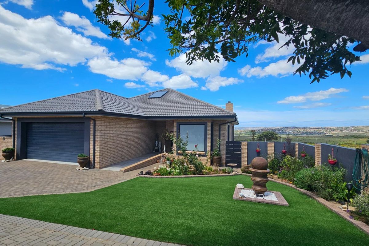 Relaxed Garden Route living in Monte Christo Eco Estate near Mossel Bay — seamless indoor–outdoor entertaining with stacked-door braai. Three beds, two baths, double garage.