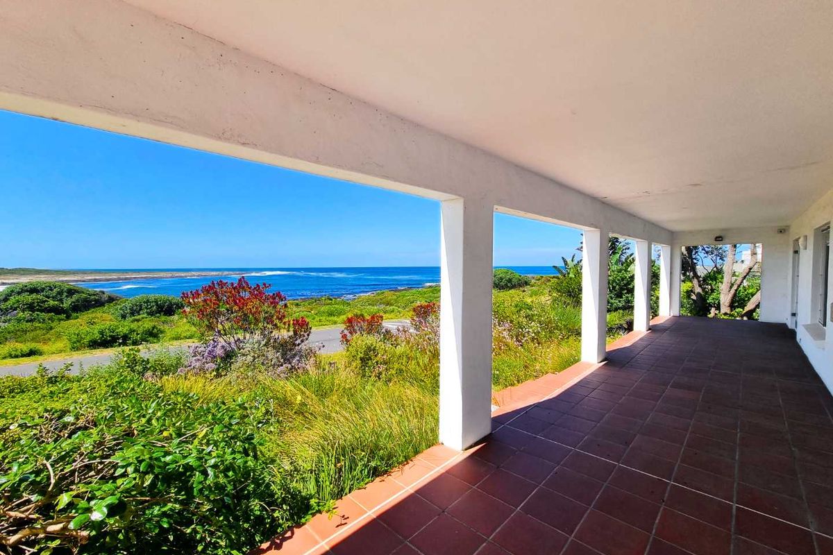 Live with waves and mountain sunsets in Sandbaai — oceanfront home with balcony views, open kitchen, built-in braai for entertaining; four bedrooms, three bathrooms, double garage.