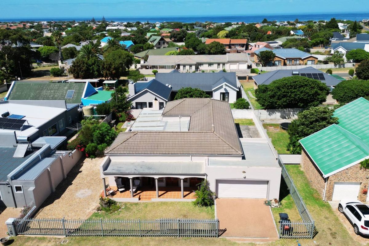 Coastal family living near sandy beaches and a private school, with open-plan living, enclosed entertainment area with built-in braai, north-facing patio and mountain views; three bedrooms, two bathrooms, double garage.