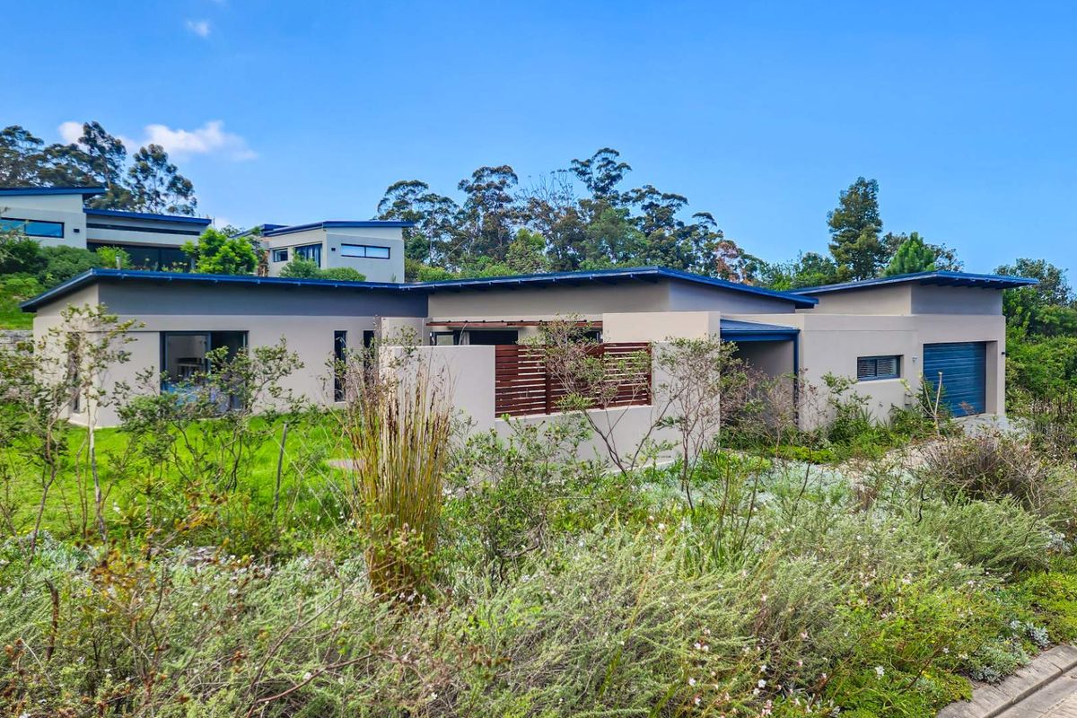 Relaxed estate living in Simola Woodlands, minutes from Knysna's lagoon and town — single-level home with expansive private garden, outdoor braai, modern kitchen and three en-suite bedrooms.