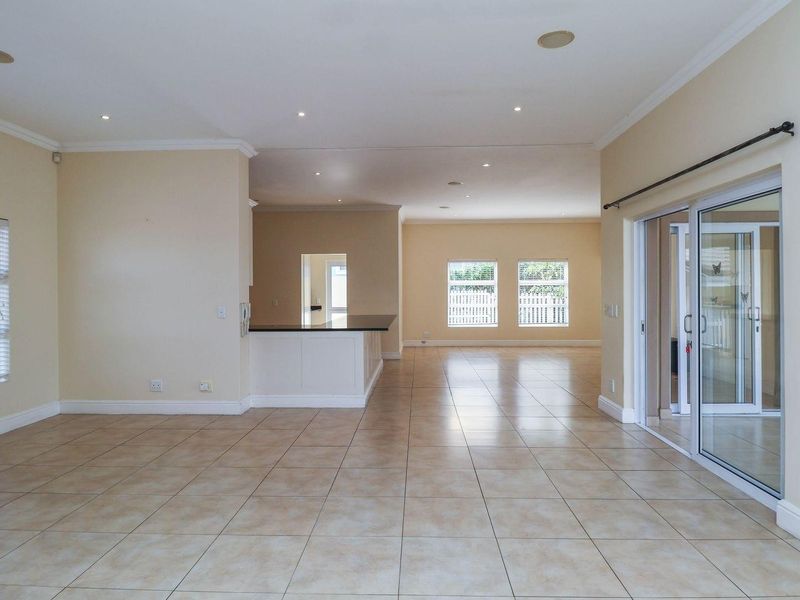 Peaceful cul-de-sac living steps from the lagoon, with effortless indoor–outdoor flow to a leafy secret garden and enclosed entertainment area with built-in braai; four bedrooms, four bathrooms, double garage.