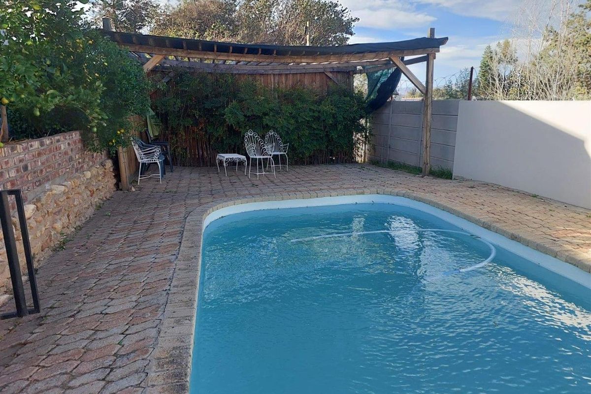 The house features 5 bedrooms of which 2 are en suite. The Main bedroomhas a walk in closet that leads to the full bathroom. Three other bedrooms has built in cupboardsand the fifth is large enough to be split in 2 separate rooms. 2 Bathrooms are en suite and a separate bathroom and toilet are available for guest. The big living room space also feature a dinning extension. The kitchen has more than enough storage space. A Dover stove can provide heat during the cold winter days. Further the property offers a big entertainment area with a bar and built in braai. From the entertainment area you have a covered veranda to enjoy the fresh Karoo air. Further buildings include a double garage and 2 storage rooms and covered parking for at least 2 vehicles.