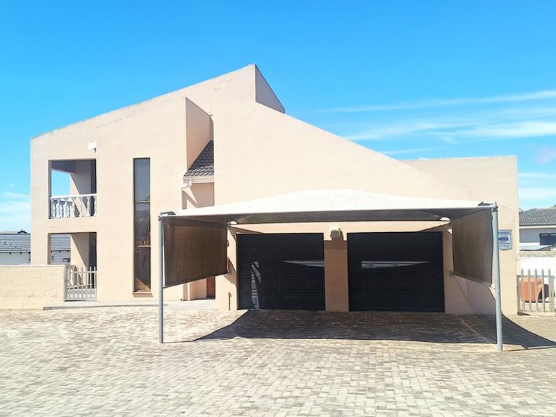 Relaxed country-club living in Langebaan — ideal for hospitality or multigenerational use, with braai/bar entertainment area opening to pool, garden and balconies; registered guest house with eight bedrooms, eight-and-a-half bathrooms.