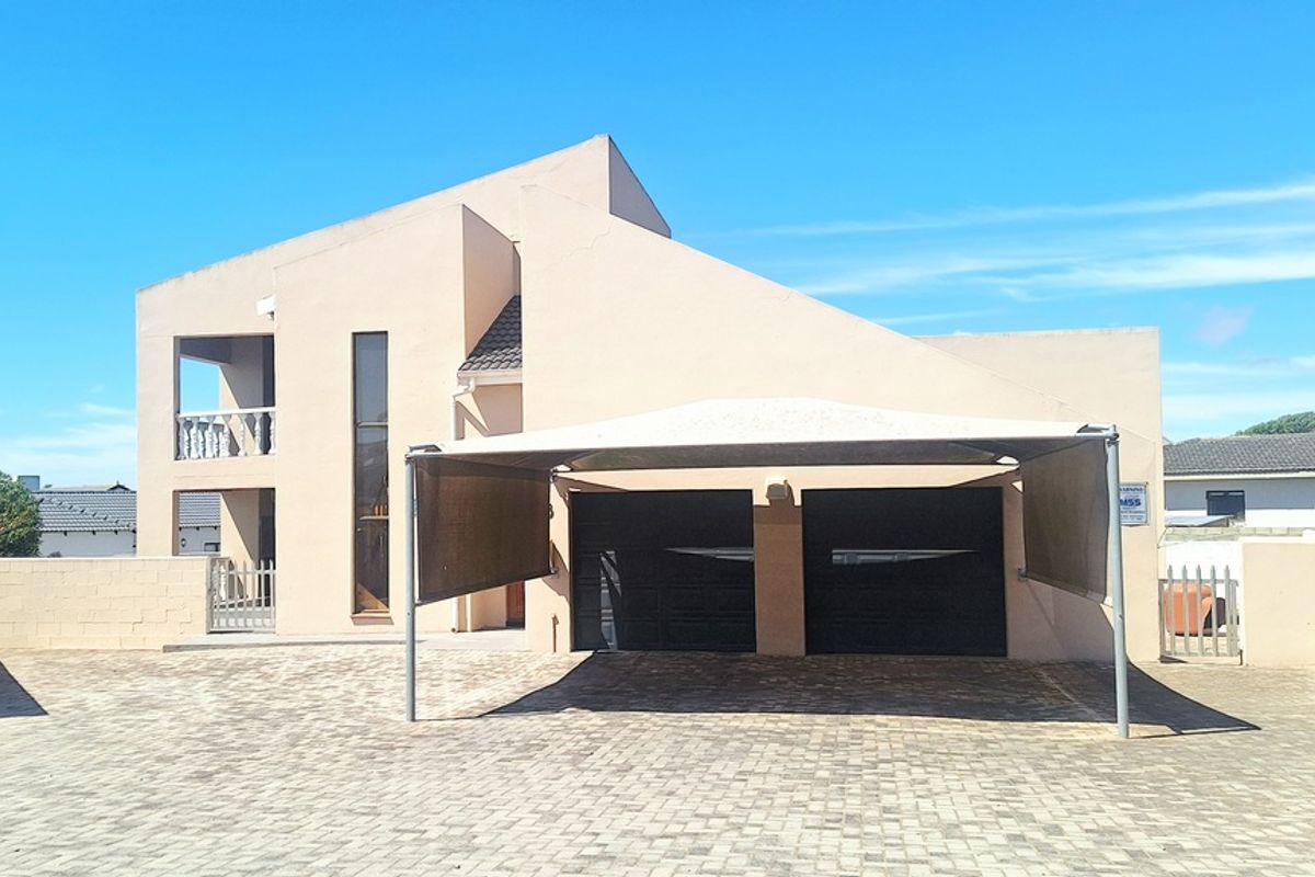 The open-plan living areas form the heart of the home, with a built-in braai perfectly positioned to connect the lounge, dining area, and kitchen. Sliding doors open onto a wind-protected, covered patio with an additional outdoor braai—ideal for relaxed family gatherings and peaceful afternoons spent enjoying the outdoors.