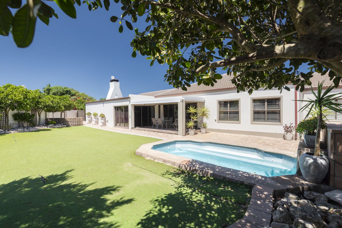 Effortless indoor-outdoor entertaining in Country Club, Langebaan, moments from Mashie golf course. XXL braai room and adjustable louvre patio overlook a heated pool. Four bedrooms, 3.5 baths.