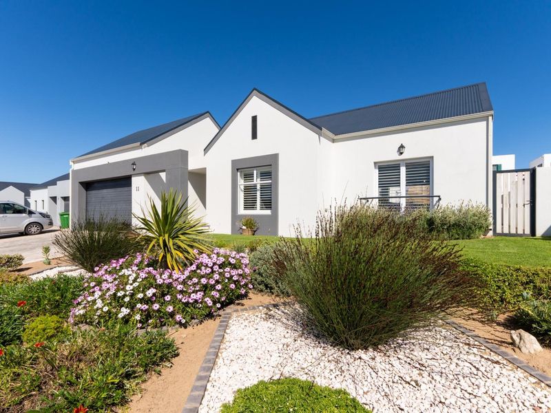 Effortless family living in Langebaan's boutique estate, minutes from schools, shops, restaurants and beaches; open-plan living flows to enclosed braai stoep with built-in braai, three beds, two baths and garage.