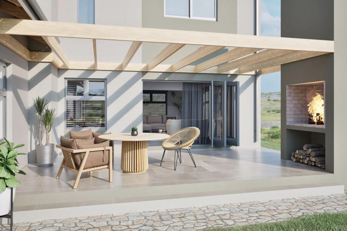 Elevated West Coast living in Langebaan Country Estate, with lagoon and sunset views — open-plan entertaining, wind-protected braai terrace and balcony. Four bedrooms, three bathrooms, three garages.