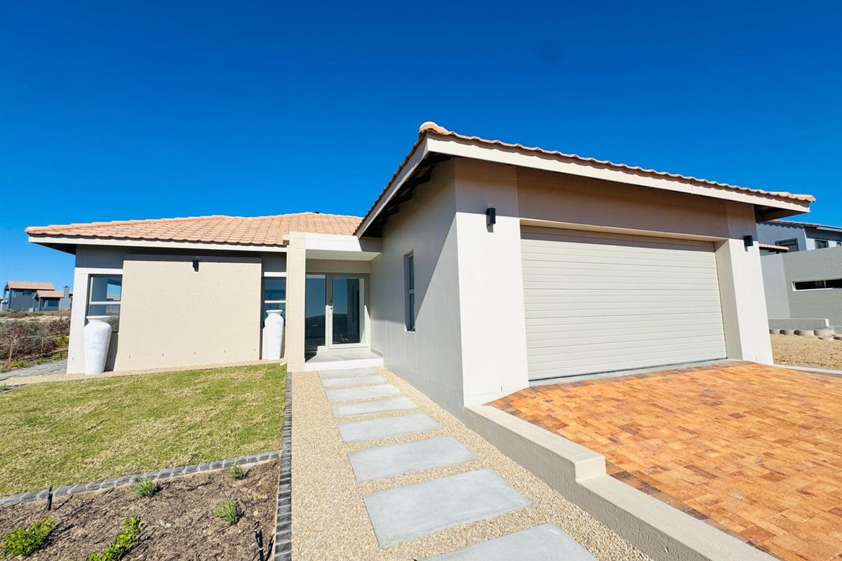 Wake to warm north-west sun and golf-course living in Langebaan Country Estate, with lagoon views, a waterfall-island kitchen and landscaped indigenous garden — three bedrooms, two bathrooms.