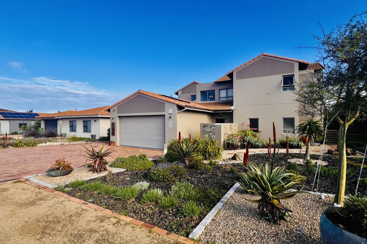 Clubhouse side of the Estate - Tucked away near the end of a quiet cul-de-sac in Langebaan’s premier lifestyle estate, this exceptional double-story home offers a rare blend of privacy, space, and uninterrupted golf course views. Surrounded by green belts and landscaped gardens, it's a haven of calm and luxury — just an hour from Cape Town.