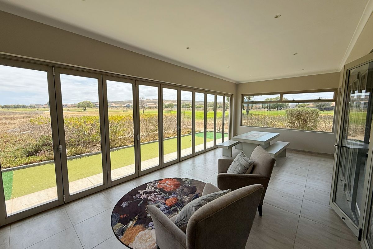 Relaxed golf-side living in Langebaan Country Estate, minutes from the lagoon and clubhouse, with uninterrupted fairway views, enclosed veranda with built-in braai, four bedrooms, three bathrooms and triple garage.