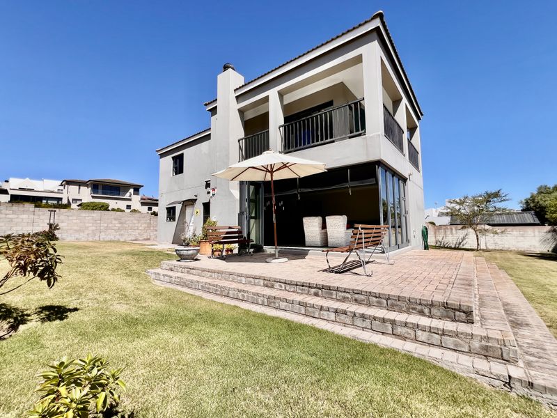 Embrace relaxed coastal living in Langebaan, tucked behind a greenbelt with second-floor lagoon views. Private walled garden, indoor braai and patio — three bedrooms, three bathrooms, double garage.