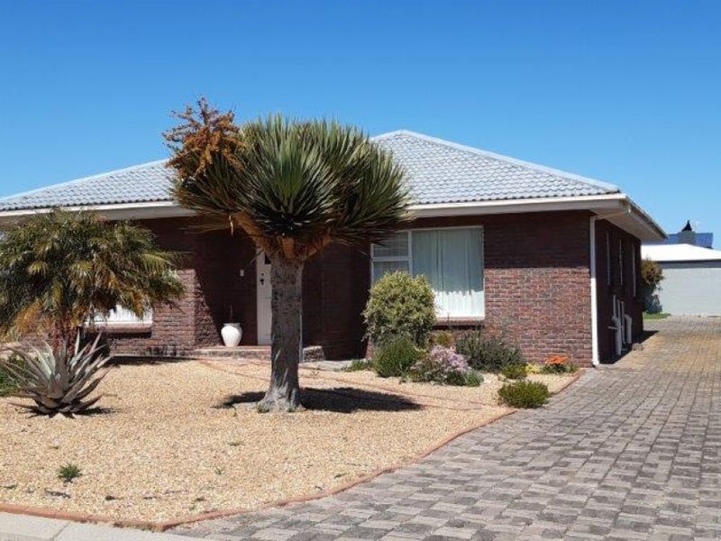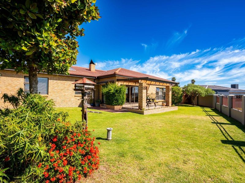 Walk to Sandbaai Beach and the Yacht Club from this Myburgh Park home — perfect for entertaining with braai room, irrigated garden and modern kitchen; five en-suite bedrooms.