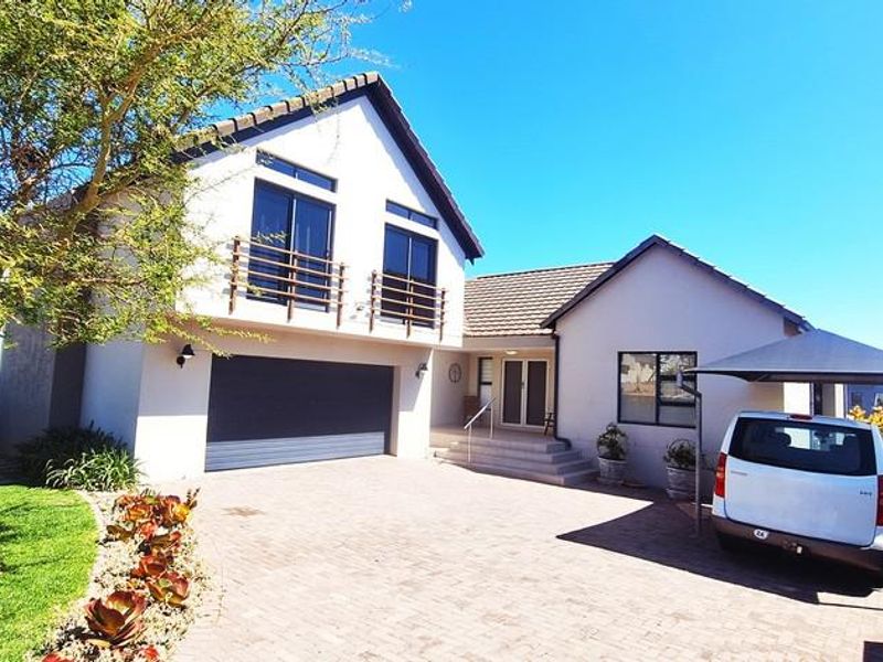 Wake to sweeping lagoon views in Myburgh Park, Langebaan — coastal tranquillity and wildlife from private balconies. Five bedrooms, five baths and four garages for family convenience.