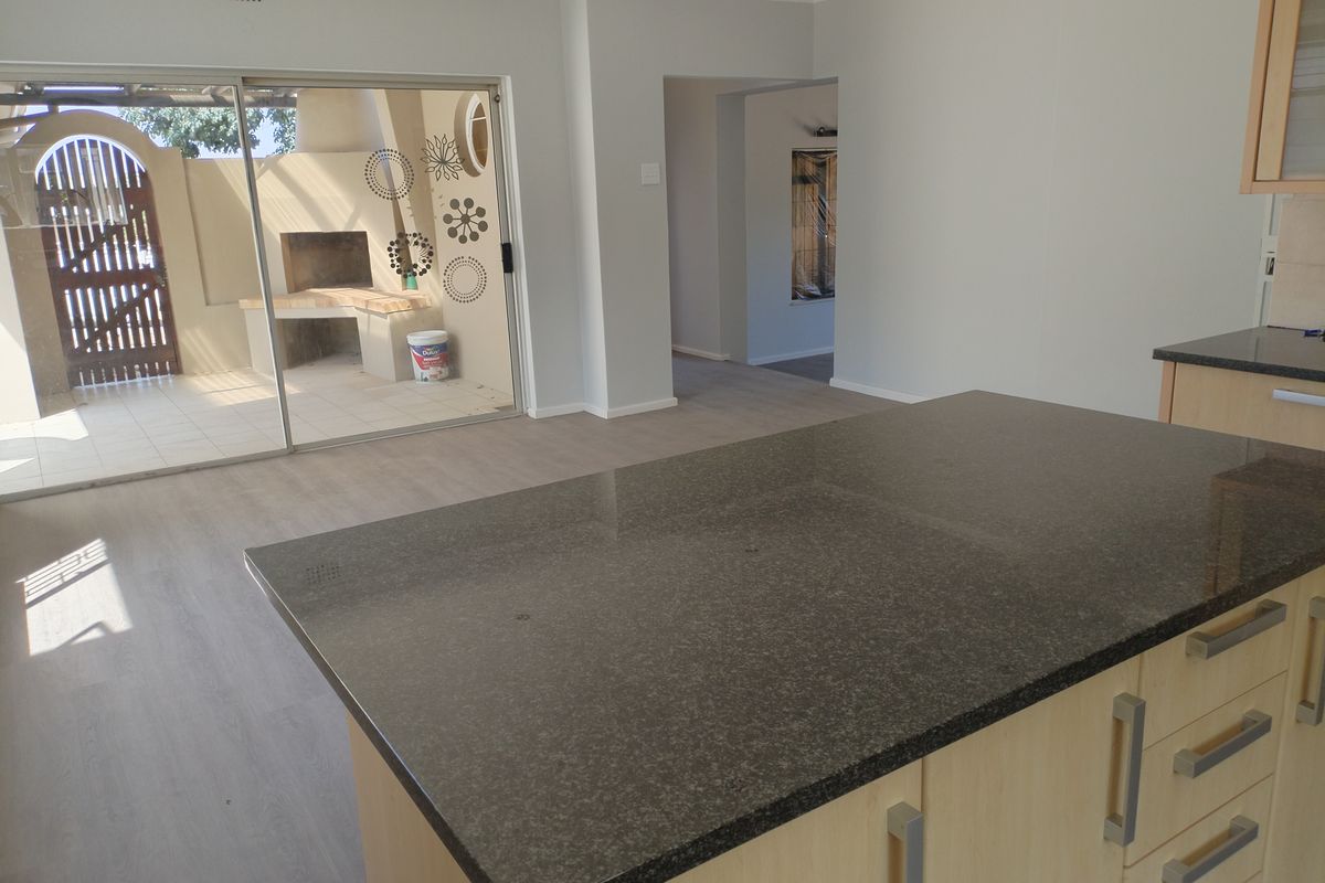 Relaxed Swartland living with indoor-outdoor flow and a sociable braai room featuring a built-in wooden bar. Modern granite kitchen, large yard and three bedrooms, two bathrooms, double garage.