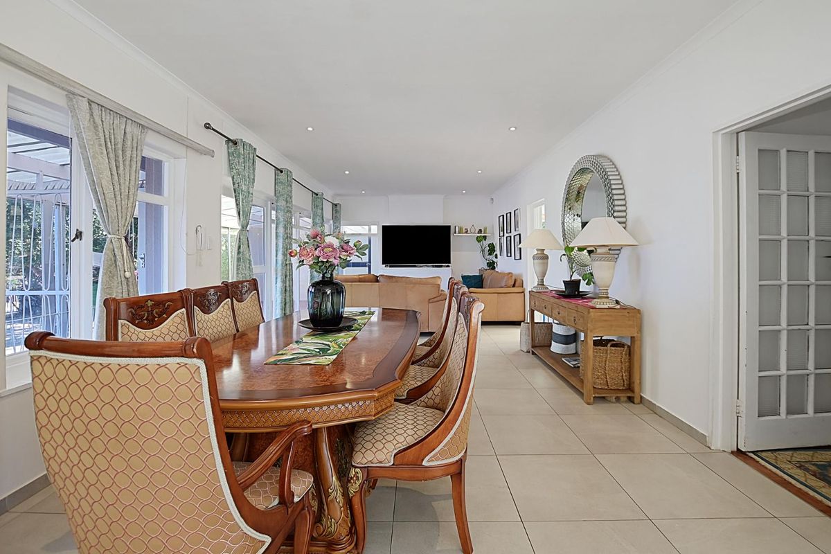 Entertain year-round from a sunny east-facing porch with partial mountain and sea views; covered patio for a built-in braai, staff quarters, walking distance to top schools and Paddocks shopping.