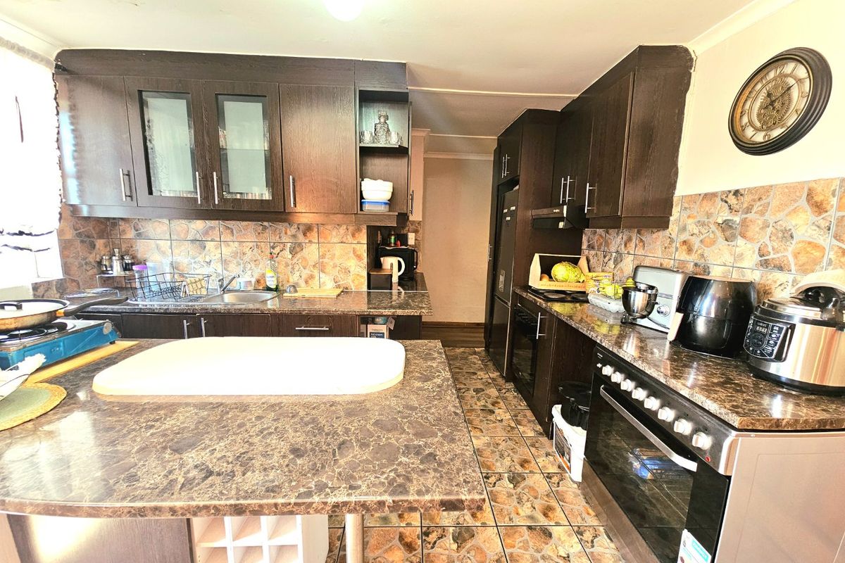 This lovely three bedroom home has presented itself to the market in Portlands. The property is enclosed behind a wall and can accommodate upto three cars. This house is situated on a 207 square metre plot. It boasts three sizeable bedrooms. Two of the bedrooms are fitted with built in cupboards. The family bathroom boasts a bath, overhead shower, handbasin and toilet. Step into a tiled open plan lounge and fully fitted kitchen. The kitchen has an electric hob and oven. The spacious yard is also enclosed with high walls and barb wire.