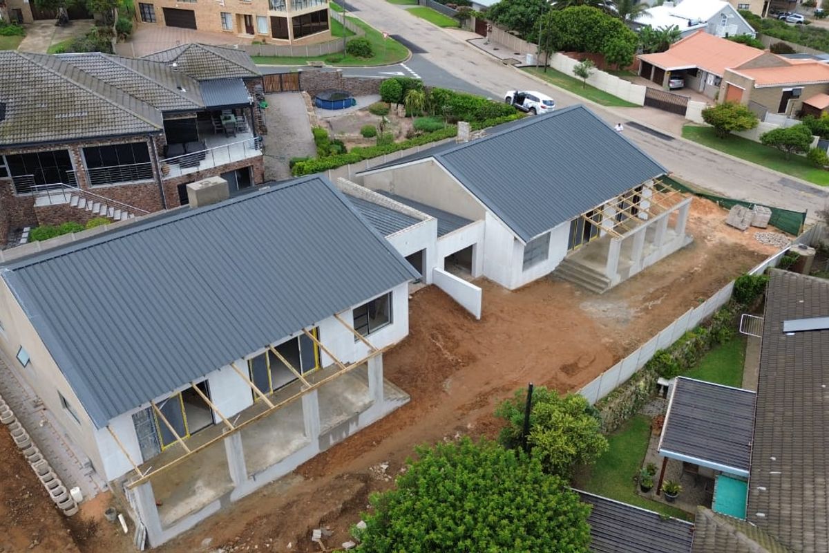 Seaside living with calm privacy in a back-unit duet moments from the beach, open-plan entertaining with built-in braai and ocean views; three bedrooms, two baths, single garage.