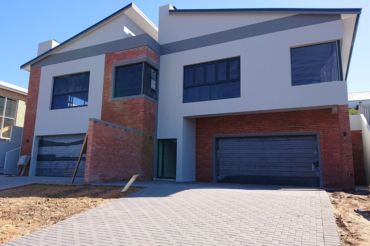 Wake up to panoramic sea and mountain views in Island View, Mossel Bay, with upper-level open-plan living, spacious scullery, three bedrooms, two baths and automated double garage.
