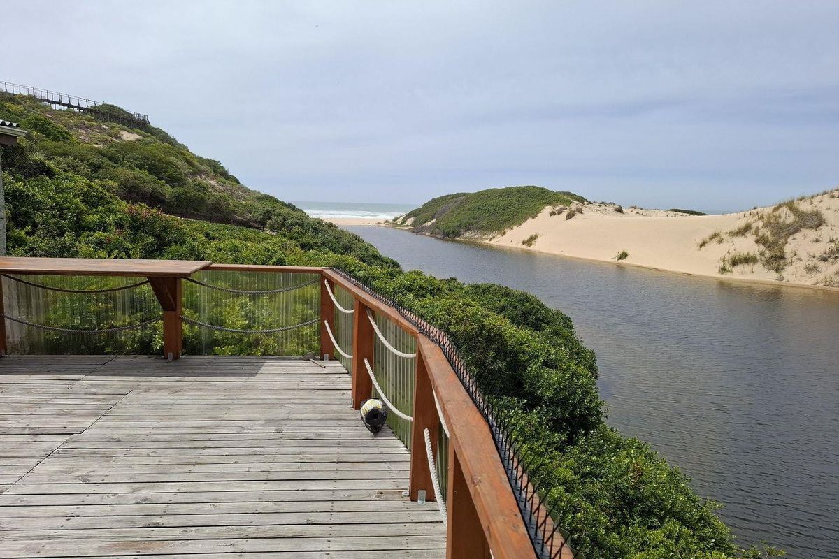 A staircase leading directly to the riverbank flanks a braai area, and a short boardwalk nearby provides access to the pristine beach
