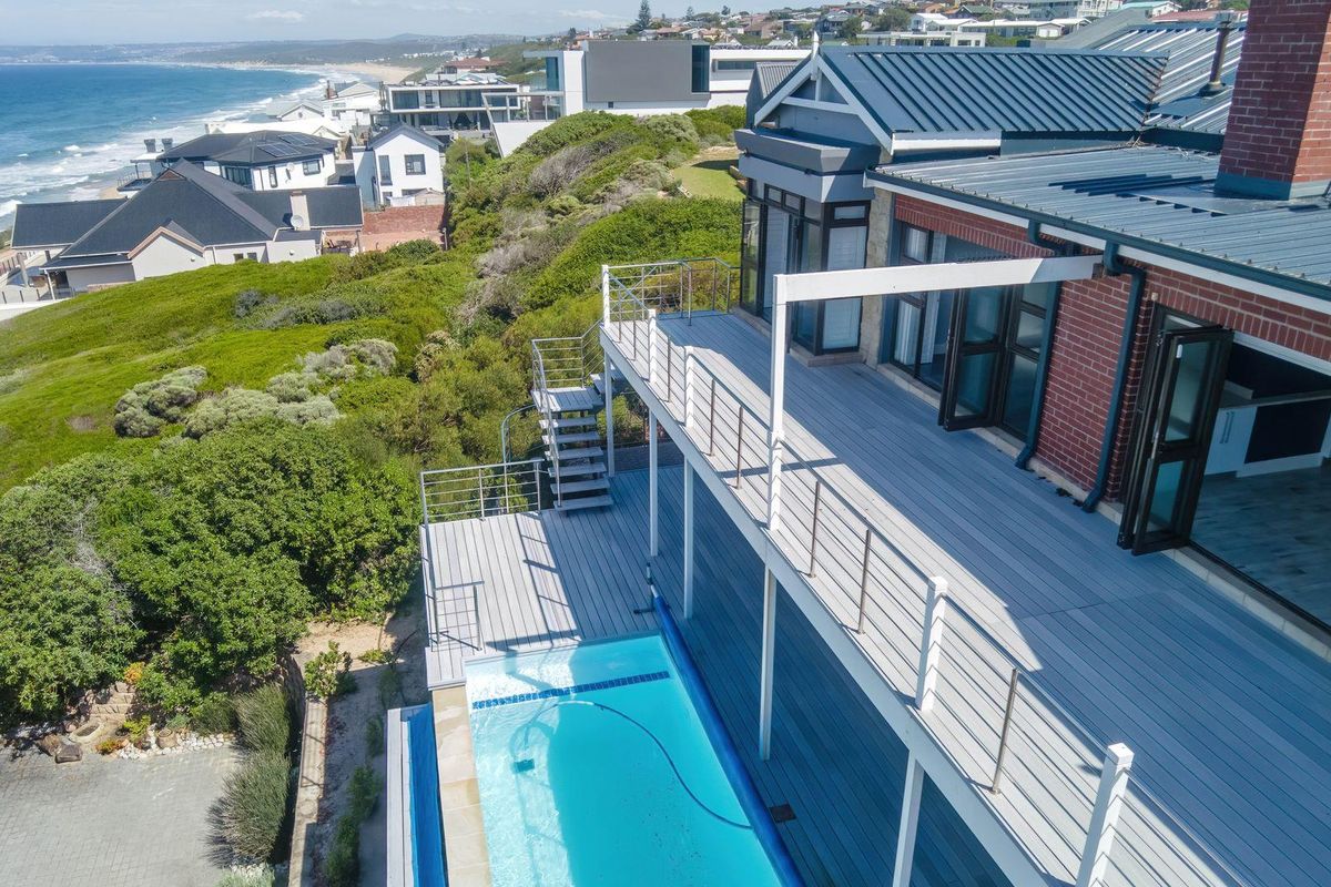 Coastal lifestyle and investment in quiet Reebok between George and Mossel Bay, sweeping sea views and infinity pool merging with the ocean. Two duets, 8 beds, 6 baths.