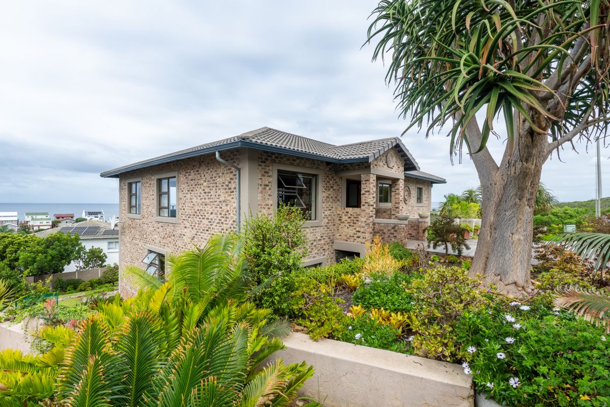 Entertainer's home with bay-view balcony and seamless indoor-outdoor flow, central built-in braai linking kitchen and dining. Four bedrooms, 2.5 baths, double garage, garden and workshop.