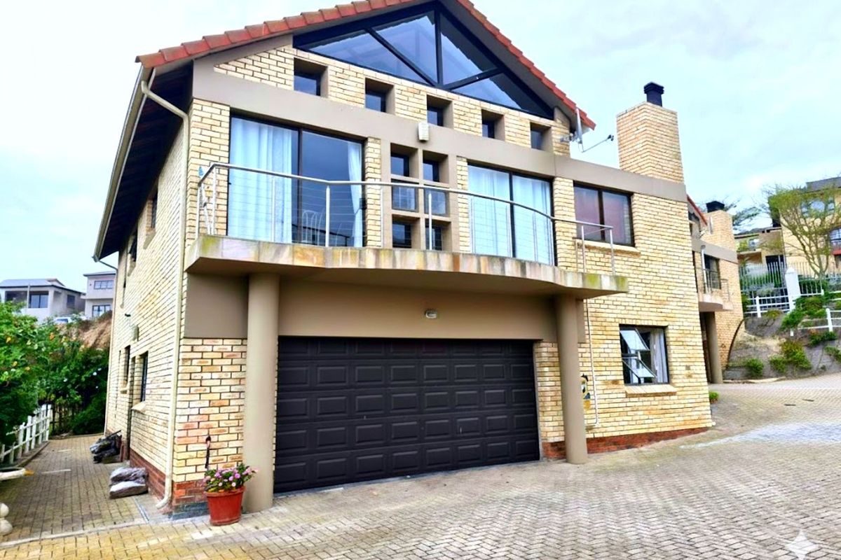 Coastal living in secure Seemeeu Park, minutes from Hartenbos beach — entertainer’s double-storey home with private balcony overlooking the green belt and distant sea; four beds, two baths, double garage.