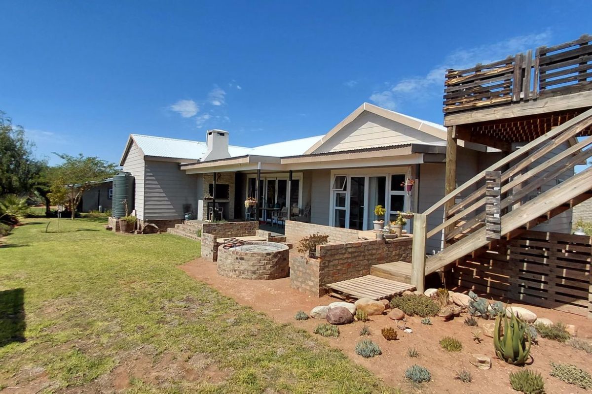 Relaxed mountain living with a raised deck for Swartberg views and stargazing, under-roof patio with built-in braai and firepit, plus an income-generating one-bedroom flat.