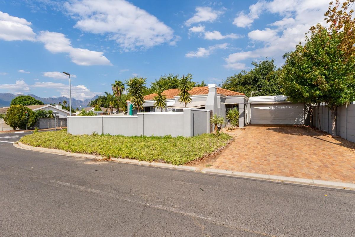 Relaxed family living in Northern Paarl, steps from parks with sweeping mountain views and a large garden ideal for a pool and braai; open-plan kitchen, three bedrooms, double garage.