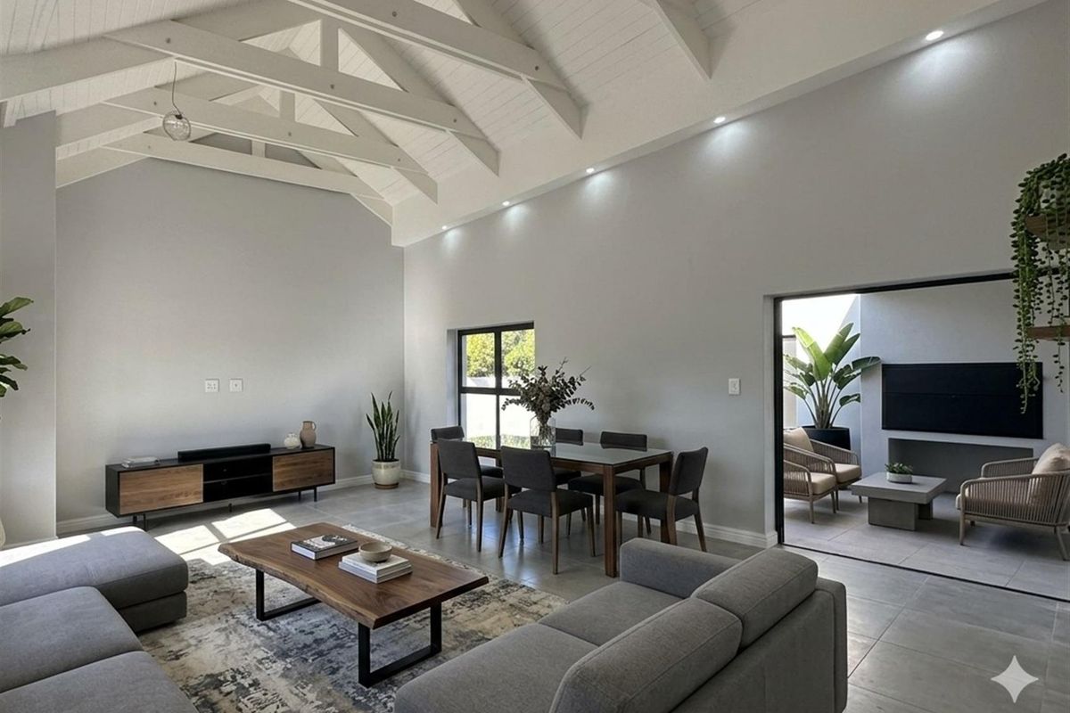 Enjoy relaxed Paarl South living with mountain views and a private garden; open-plan lounge and dining, built-in braai patio, modern kitchen, and automated double garage.