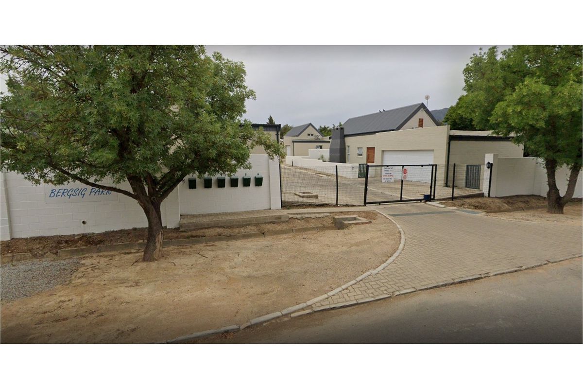 Countryside tranquillity in Porterville's Bergsig Park — mountain views and secure, quiet street living. Open-plan kitchen with built-in braai, two bedrooms and covered parking.