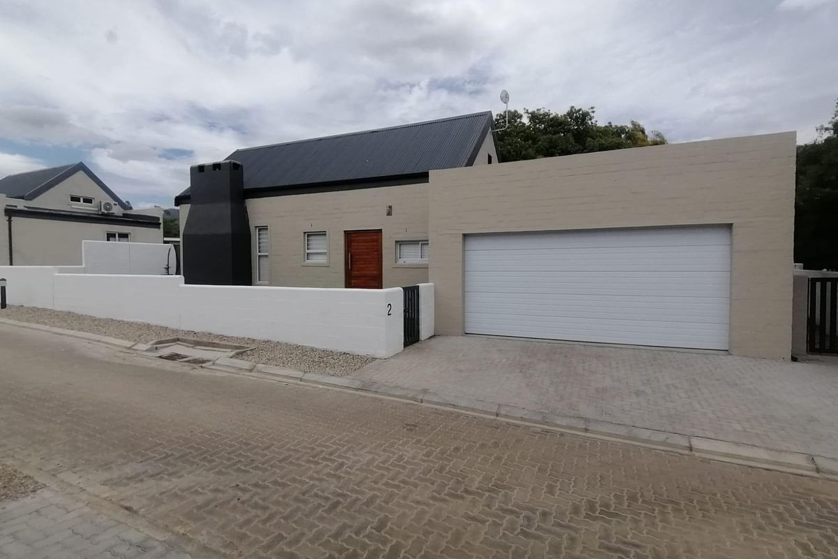 Entertainer's retreat in a peaceful complex with a distinctive tiled roof and tranquil water feature; Caesarstone kitchen, 1.8m indoor braai, stacking doors, extra-length double garage, three beds, two baths.