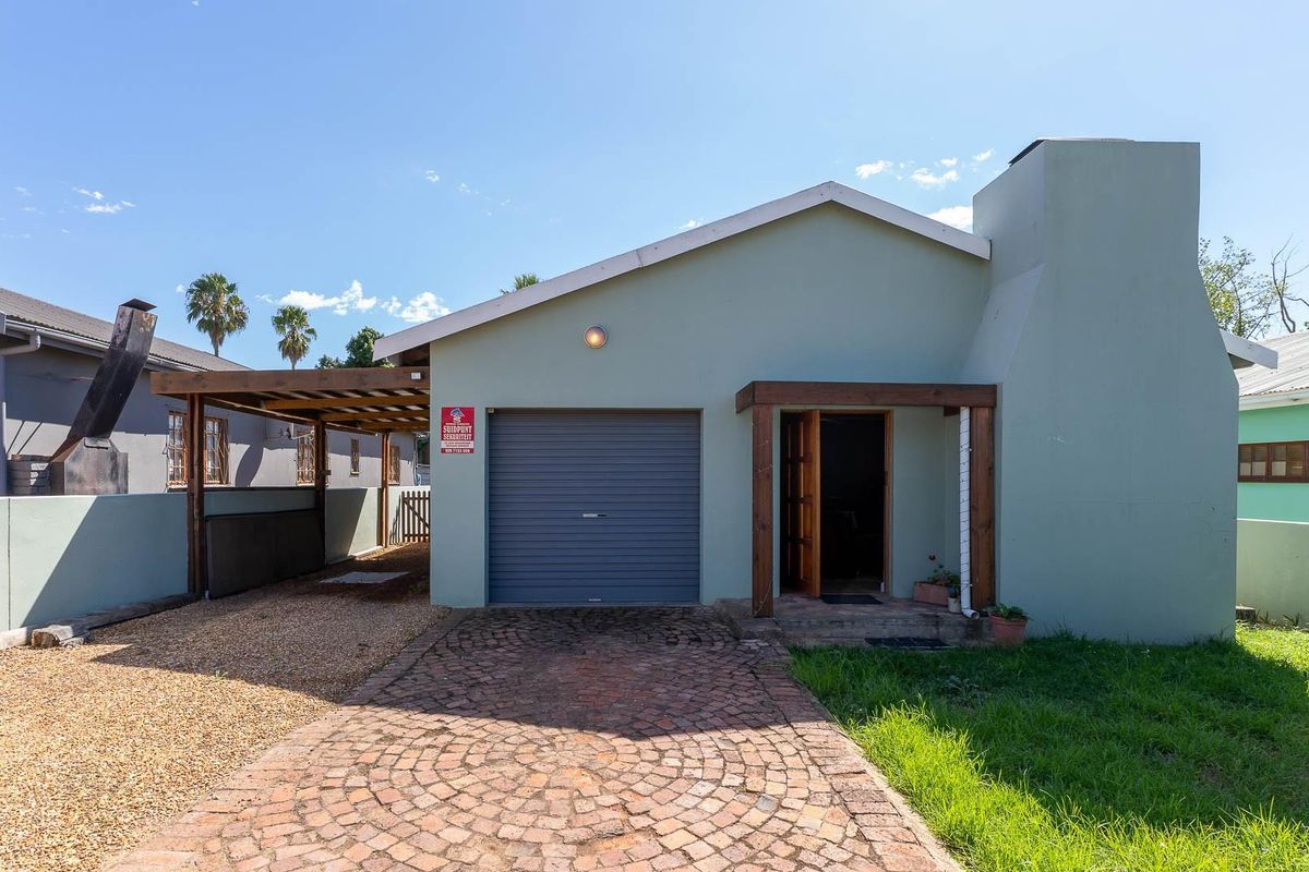 Entertain with ease in Aalwynfleur, Riversdal — spacious living with a large fireplace and braai area, two bedrooms (main en-suite), guest bathroom and remote garage access.