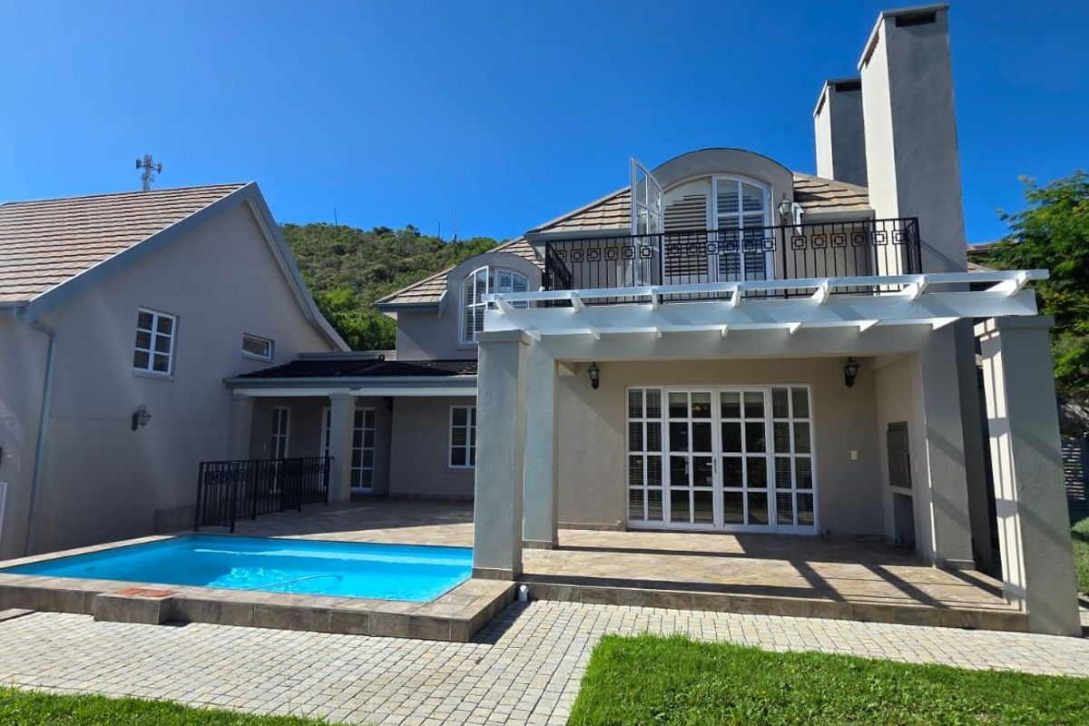 Entertainment: A wrap-around patio with a built-in Braai area overlooks a sparkling swimming pool—perfect for the "Slow Town" lifestyle.