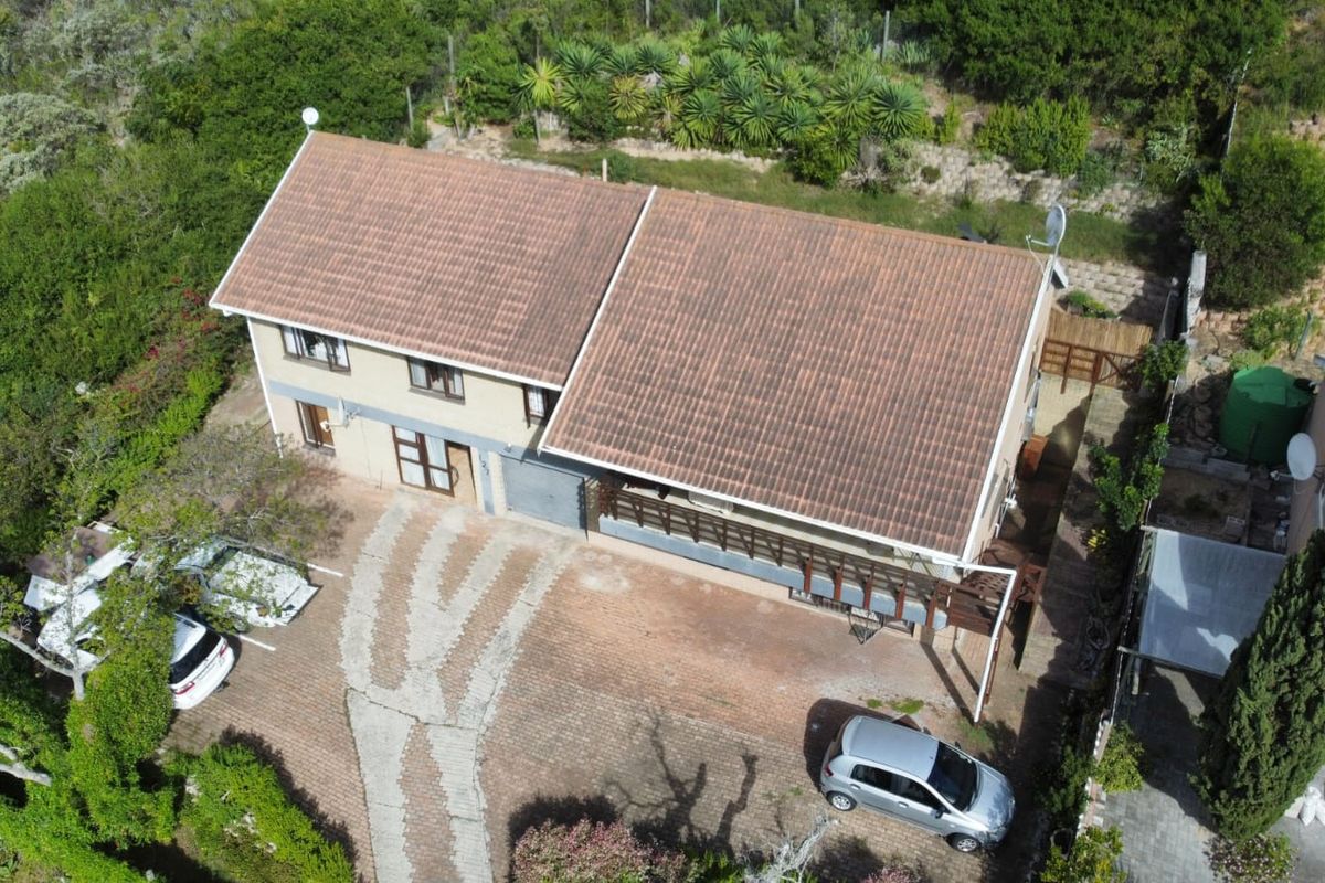 Relaxed Garden Route living on an elevated stand with mountain views, two self-contained flatlets for income, private patio and pet-friendly garden — seven beds, four baths.