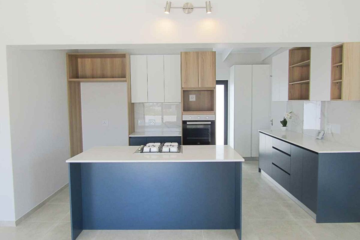 Coastal living steps from soft white sands, bright open-plan home with modern kitchen and private garden for braais. Three bedrooms, two bathrooms and double garage.