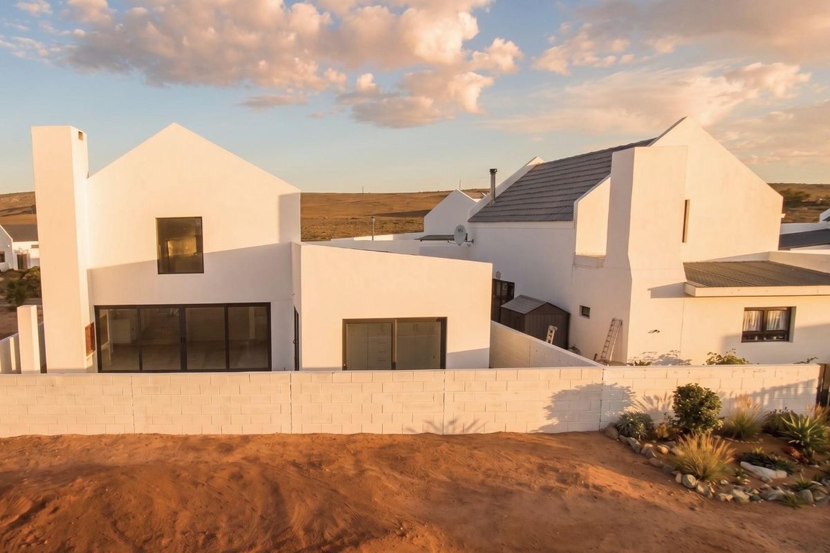 Effortless coastal entertaining in Britannia Beach Estate, moments from St Helena Bay shoreline, featuring industrial finishes, open-plan living and patio with built-in braai — two bedrooms, 2.5 baths, loft.