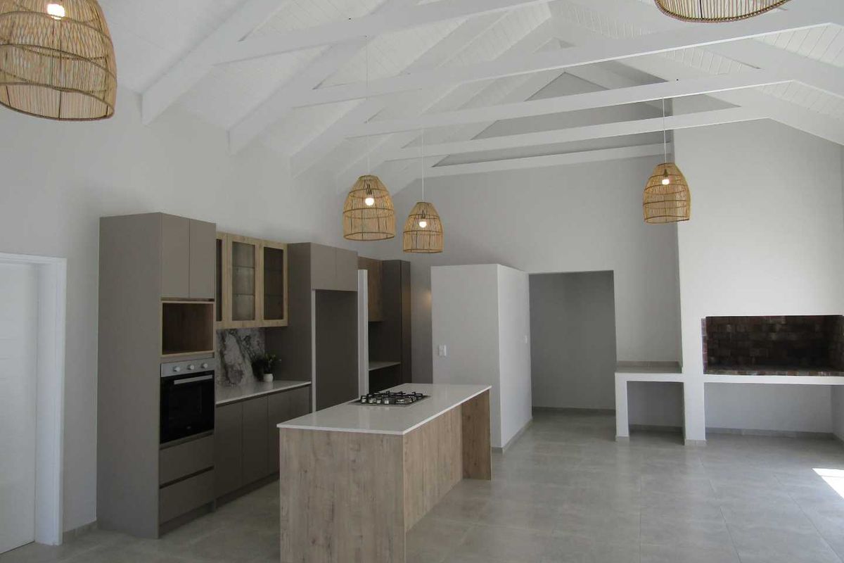 Coastal living a short stroll from white sandy beach, open-plan modern home with sleek kitchen and separate scullery, fully walled yard — three bedrooms, two bathrooms, double garage.