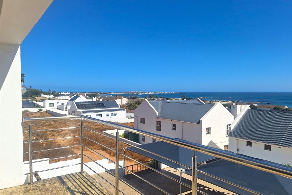 Wake up to ocean sunrises and whale-watching from a hilltop Da Gama Bay home, dual-level living with indoor braai, off-grid solar, four bedrooms and two garages.