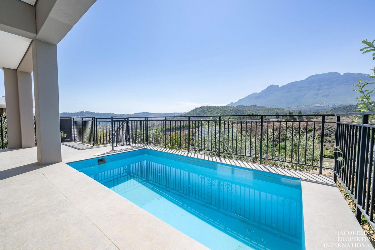 Relaxed, nature-rich estate living 7 minutes from Stellenbosch University, with sweeping mountain views from every room, undercover patio with built-in braai and pool, plus three bedrooms and 2.5 baths.