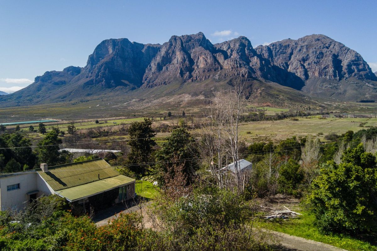 Create vineyard-edge living 10 minutes from Stellenbosch on Helshoogte Road, with panoramic Banhoek valley and Simonsberg views — flat 1,430m² plot with existing five-bedroom dwelling.