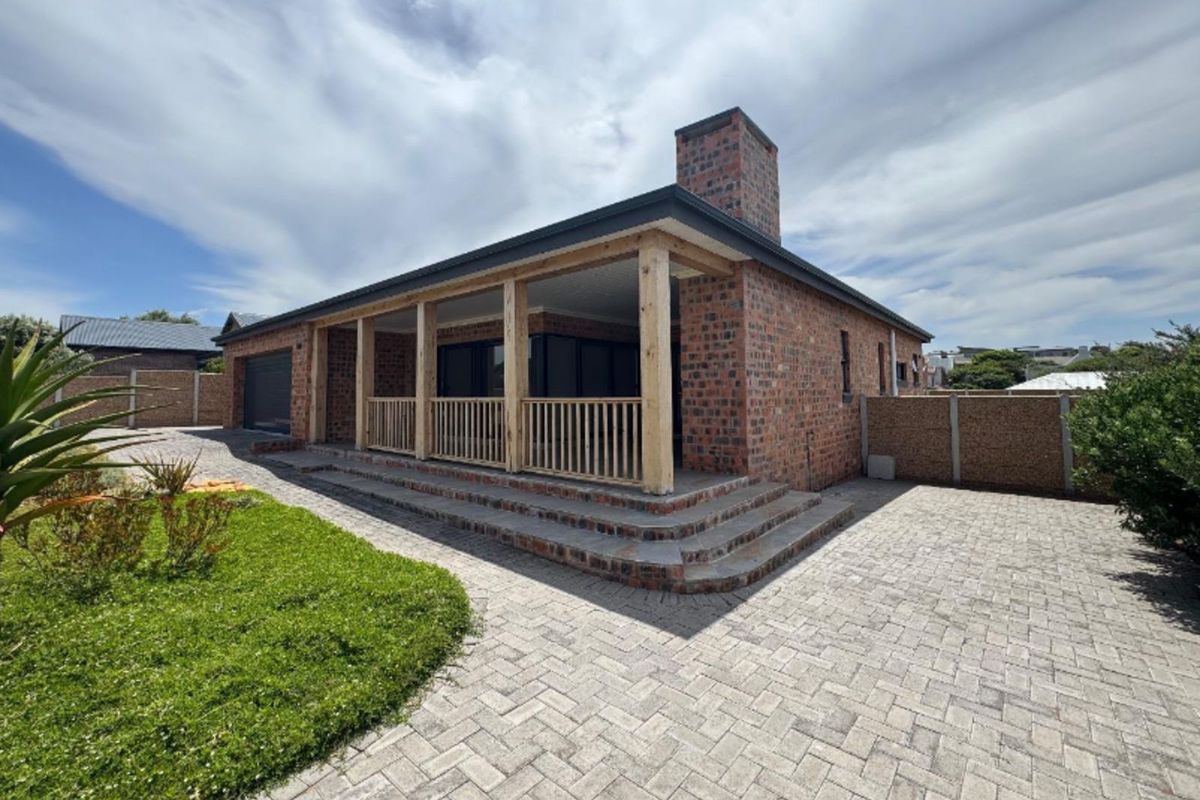 Embrace coastal life in Still Bay West—morning harbour walks and river sunsets. Open-plan home with designer navy kitchen, indoor-and-outdoor braai, manicured lawn; three beds, two baths, double garage.