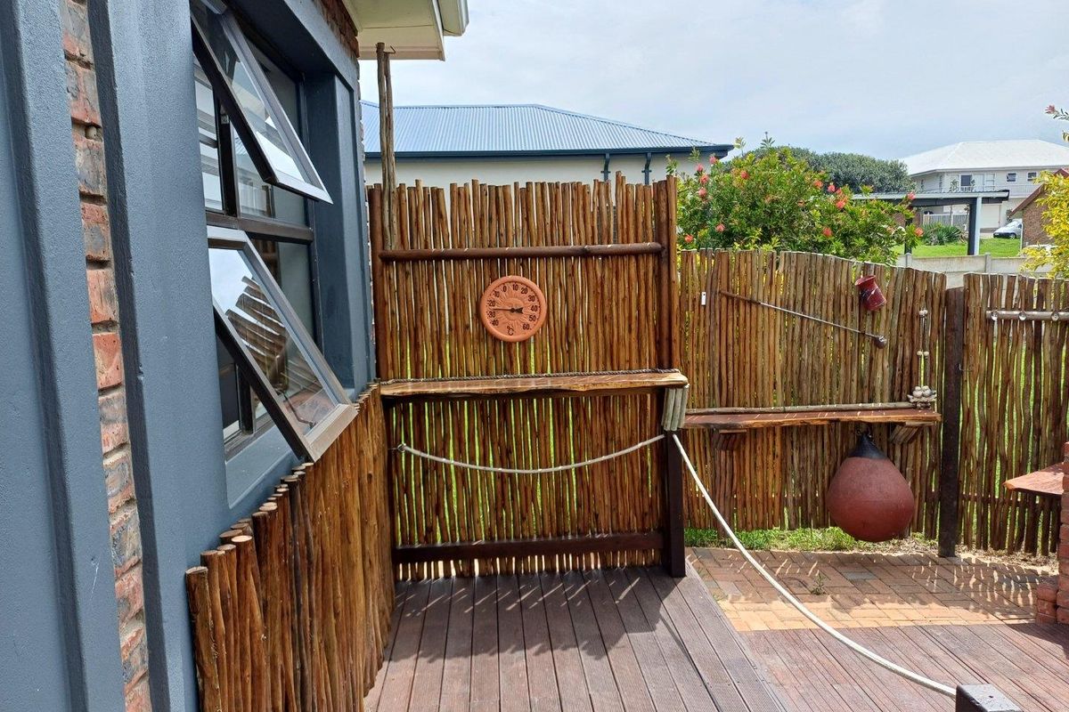 Relaxed coastal family living in a quiet Stilbaai Wes cul-de-sac beside a green belt, walking to shops and minutes from the beach, with expansive garden and outdoor braai.