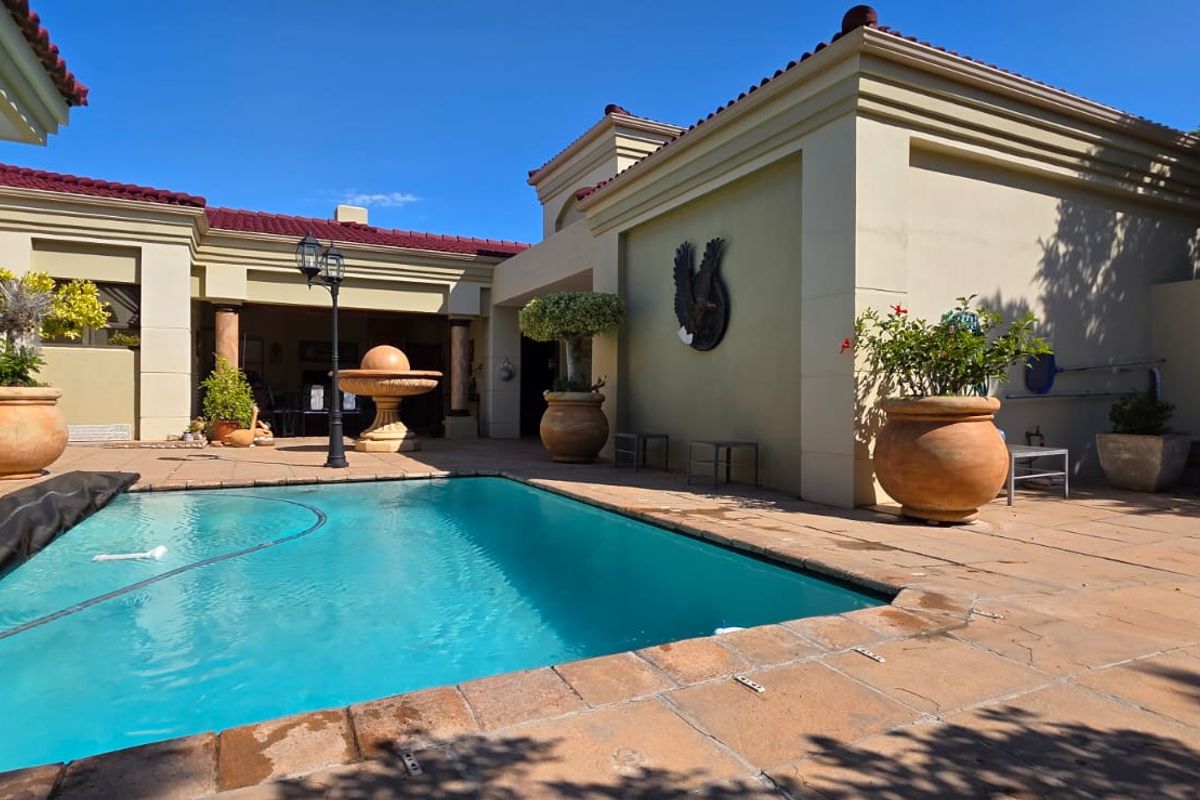 As you turn from the sweeping natural vistas, you are greeted by a truly exceptional entertainment space — a sparkling swimming pool, braai area, and serene water feature that together create a refined, five-star resort ambiance.
