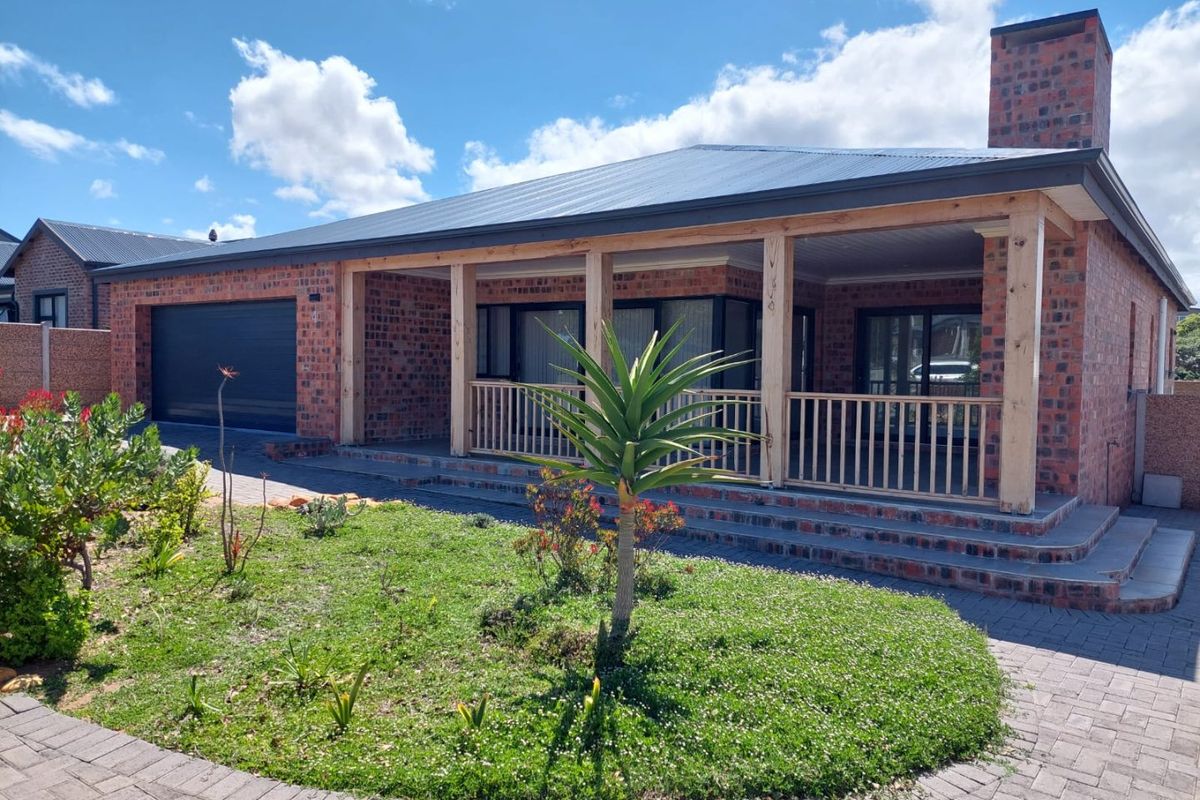 Entertainer's dream in established Still Bay West, offering seamless indoor-outdoor flow to a covered patio with built-in braai, stylish island kitchen, three bedrooms, two baths, double garage.