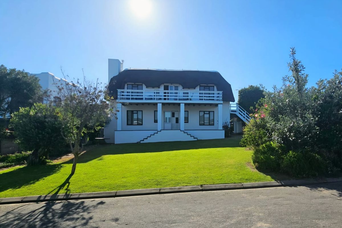 Embrace relaxed coastal living in Little England, Stilbaai — light-filled open spaces and wraparound balconies with estuary and sea views, upmarket kitchen, five bedrooms, double garage.