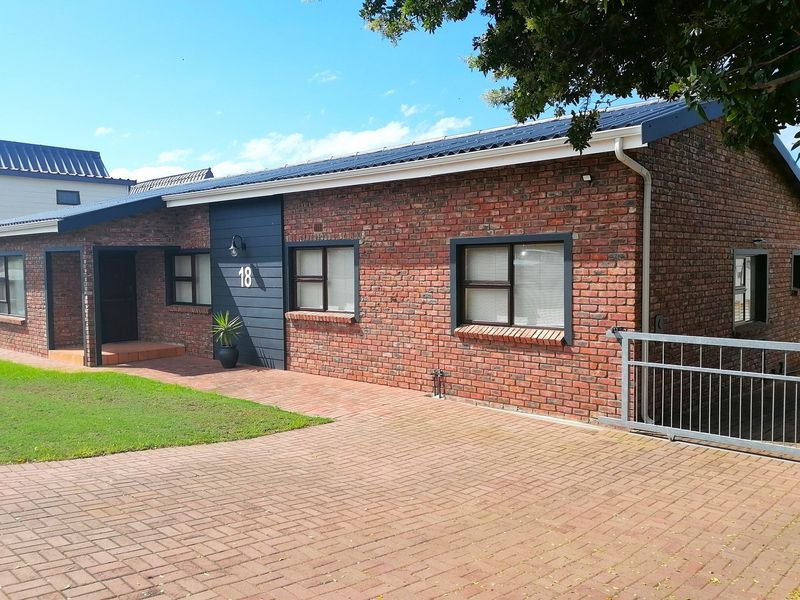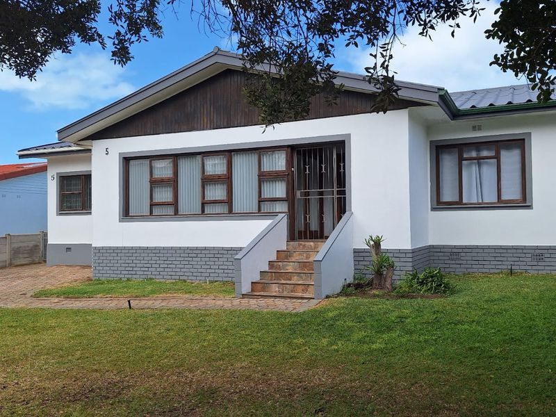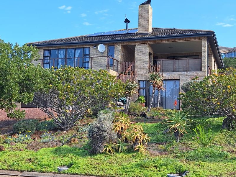 Relaxed Stilbaai coastal living with dual-living flexibility and income potential, set on a lush irrigated garden, solar-backed comfort, five bedrooms, three bathrooms, double garage.